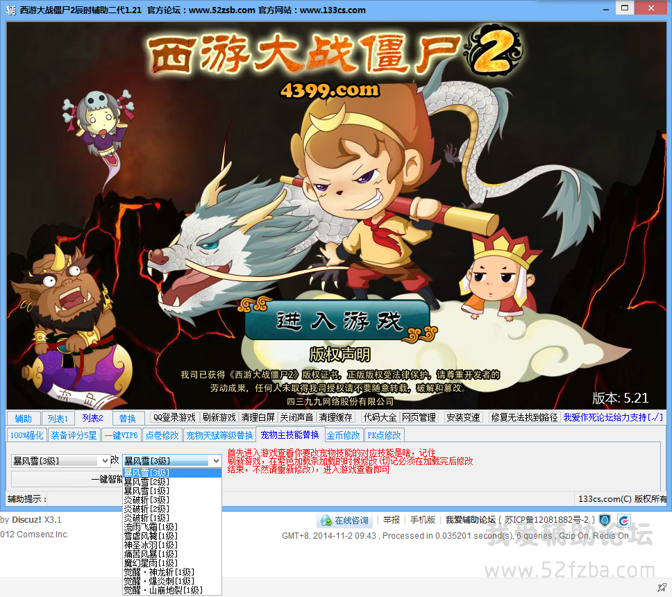 [原创] (2JB)(金币,PK点修改+宠物天赋,主技能修改+支持QQ登录)西游大战僵尸2辰时二代1.21更新 |
