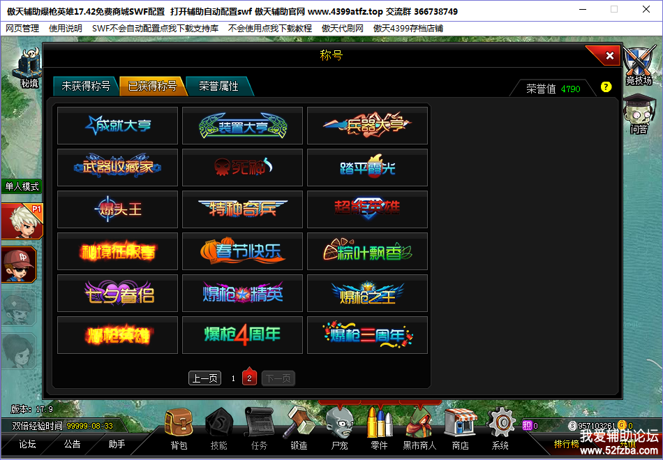 [辅助下载] 傲天爆枪英雄逆天17.90SWF配置 [逆天巅峰等级 逆天巅峰点数 999999尸宠格子 逆天buff] |
