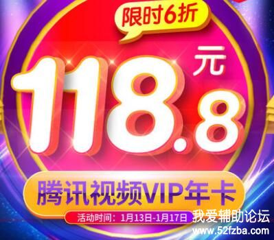 [综合福利] 腾讯视频年卡限时半价118 |