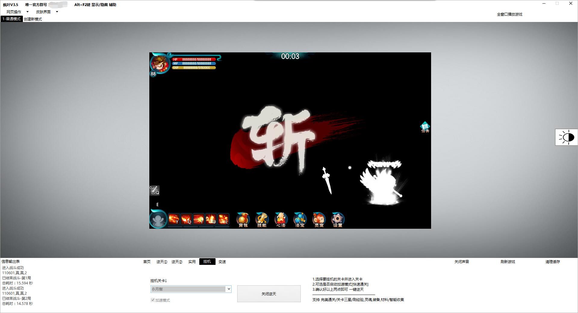 [辅助] [支持全地图挂机+完美通关+关卡三星+刷等级+灵魂+装备+材料+智能收集]枫叶造梦5V3.5 |