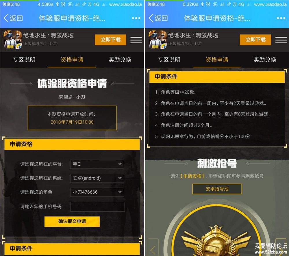 [综合福利] 刺激战场体验服资格申请 |