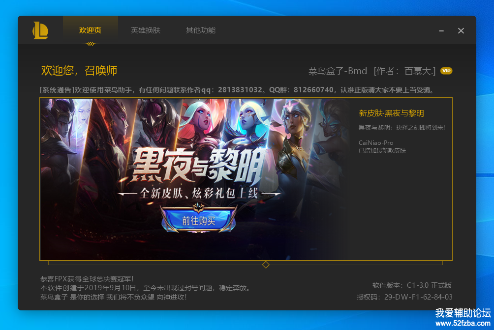 [辅助工具] 菜鸟LOL换肤+自动挂机永久免费版本 |