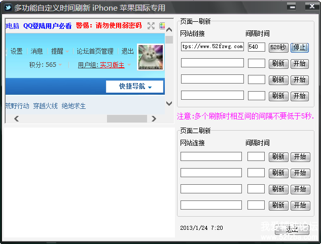 [电脑应用] 我爱辅助论坛刷在线时间辅助(网页自动刷新) |