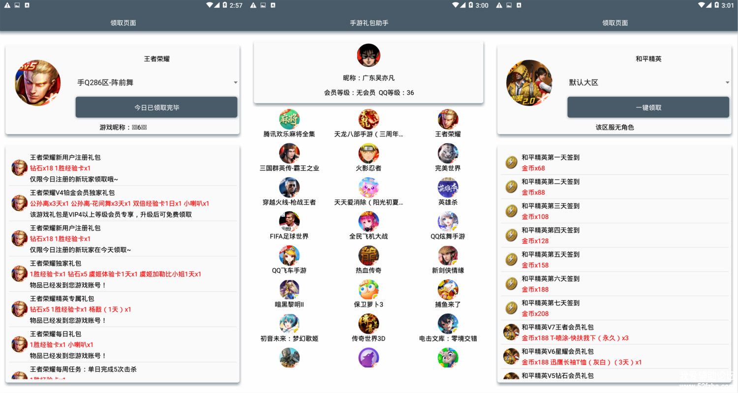 [软件破解] 手游礼包助手 和平精英/王者荣耀85款游戏礼包免费领取 |