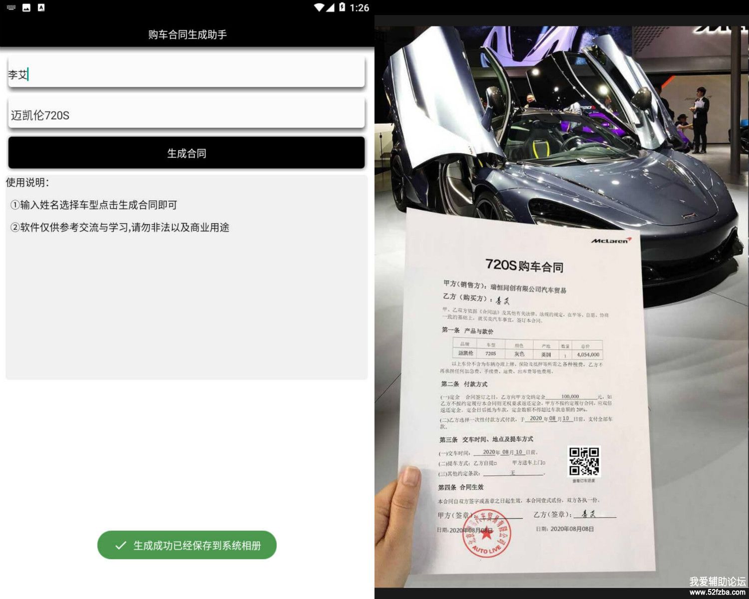 [软件破解] 购车合同生成助手 输入名字一键生成买车合同 装B恶搞神器 |