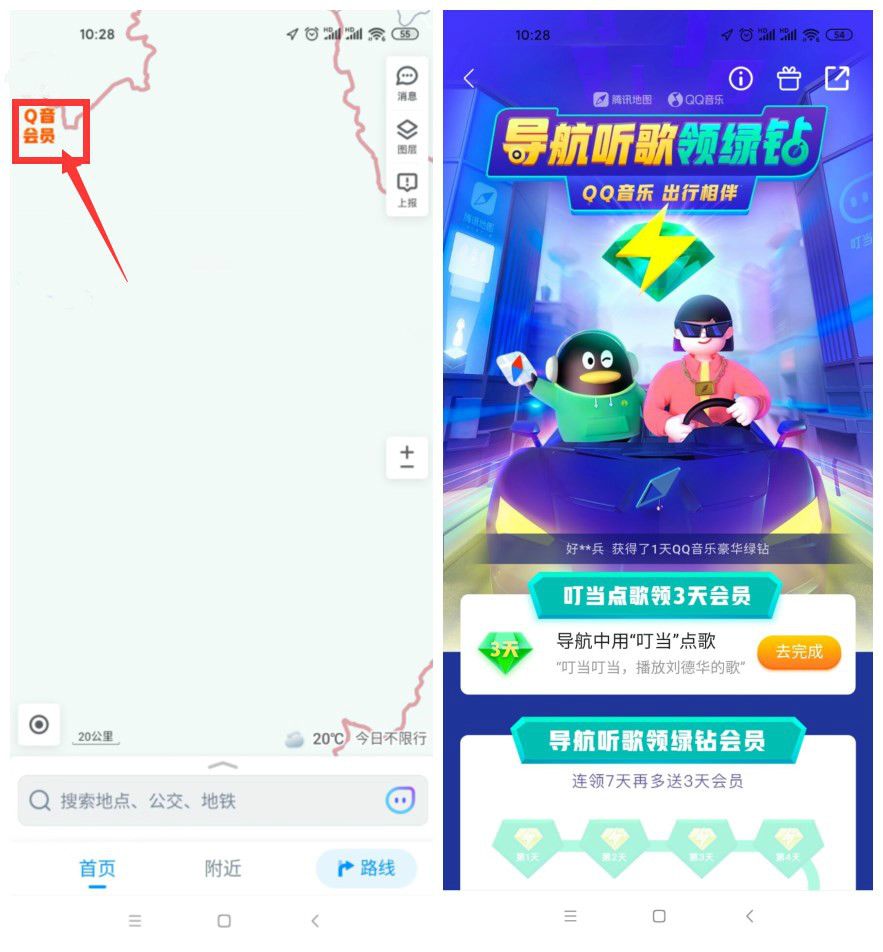 [综合福利] 腾讯地图免费领3~31天绿钻 |